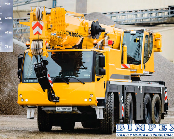Fabricante: Liebherr Modelo: LTM1090-4.2 Capacidad Nominal: 90 toneladas Largo de Pluma: 60 metros Formato: AT – All Terrain Año 2020 CatálogoFicha EquipoDimensionesTabla de Carga General